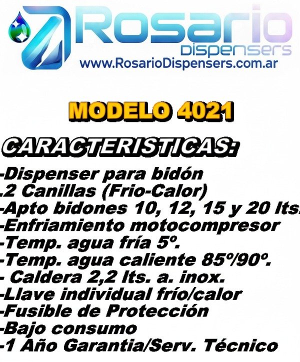 Dispenser de agua Modelo: 4021 - Para Bidón - 2 Canillas